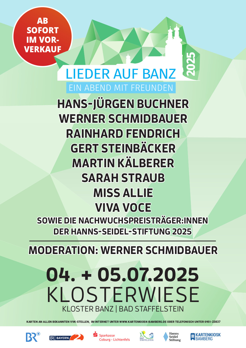 Der Veranstaltungsservice Bamberg ist seit über vierzig Jahren im gesamten nordbayerischen Raum und über die Grenzen Thüringens hinaus in der Konzertorganisation tätig. Das Künstler-Repertoire deckt in den Bereichen Klassik, Rock & Pop, Schlager und Comedy, bis hin zu Theater/ Musical, Show und Tanz einen Großteil der Veranstaltungsbranche ab. Besondere Konzerthighlights sind die jährlich stattfindenden Freiluftreihen, wie der HUK-COBURG open-air-sommer auf dem Schlossplatz in Coburg, das Rösler Open Air auf Schloss Eyrichshof bei Ebern oder das Liedermacherfestival „Lieder auf Banz“ auf Kloster Banz bei Bad Staffelstein.