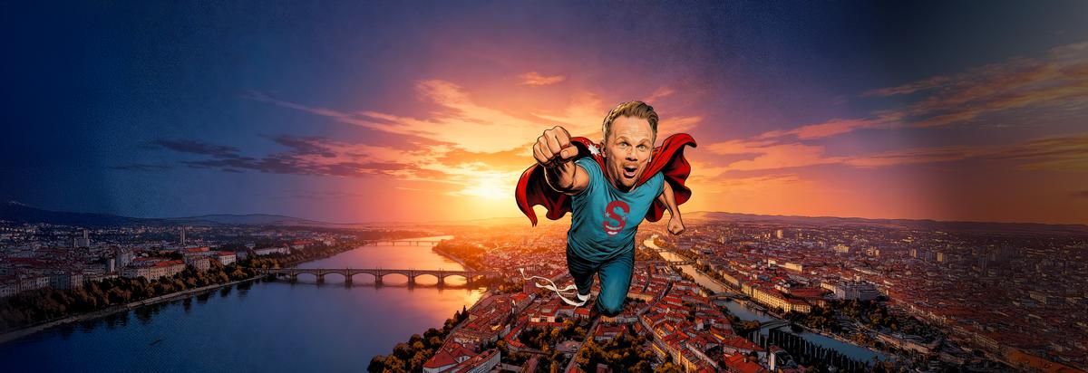 Er rast über die Bühne mit der Geschwindigkeit von Flash. Seine Pointen schlagen ein wie der Hammer von Thor. Mit dem Röntgenblick von Superman schaut er den Menschen in die Seele und weiß sofort, was sie wollen – und er gibt ihnen genau das! Mit seiner ultimativen Superkraft: SCHMITZMÄN bringt Menschen zum Lachen!
