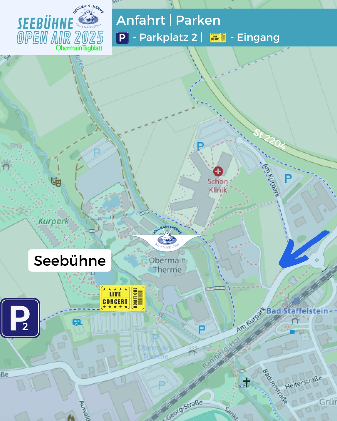 Die Eingänge befinden sich in der Seestraße & Am Kurpark 1 96231 Bad Staffelstein.
